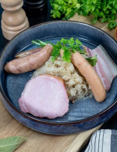 Profitez de notre large gamme de produits en bocaux, allant de la choucroute au Baeckaoffe traditionnel, pour retrouver chez vous le goût authentique de l’Alsace.