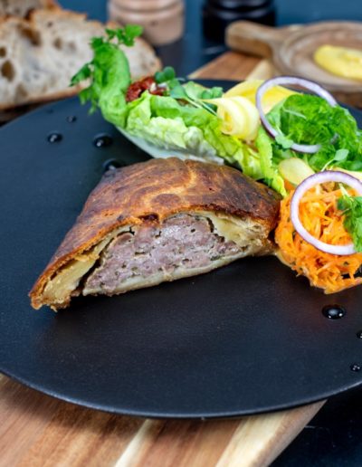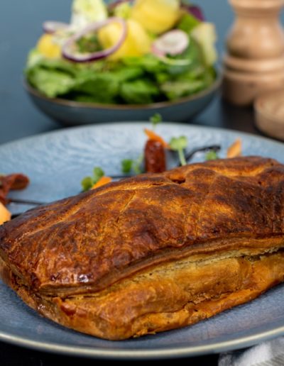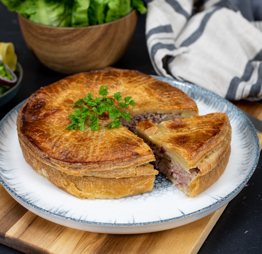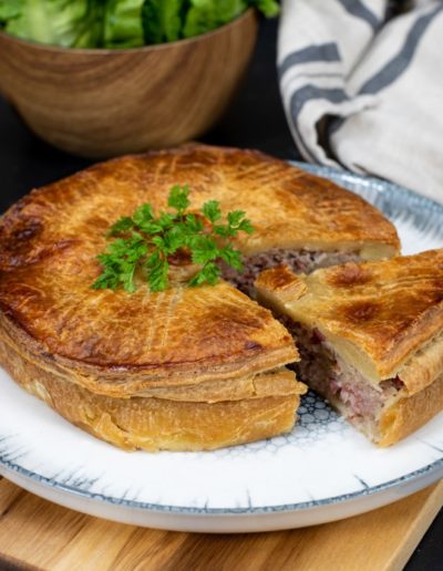 Laissez-vous tenter par notre gamme pâtissière, où chaque tourte et pâté est préparé avec une pâte feuilletée ou brisée entièrement maison, garantissant une qualité et une fraîcheur inégalées.